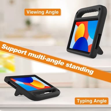 Lapsiystävällinen kotelo, jossa on kahva ja säätötoiminto tabletille, joka suojaa hyvin kolhuilta ja putoamisilta.