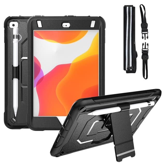 Edistyksellisellä 4-in-1-rakenteella varustettu suojakotelo suojaa iPadiasi ja säilyttää Apple Pencil -kynäsi, ja siinä on kääntyvä tuki handsfree-katselua varten ja säädettävä olkahihna.