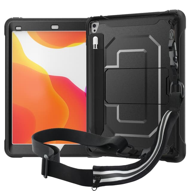 Edistyksellisellä 4-in-1-rakenteella varustettu suojakotelo suojaa iPadiasi ja säilyttää Apple Pencil -kynäsi, ja siinä on kääntyvä tuki handsfree-katselua varten ja säädettävä olkahihna.