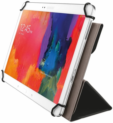 Trust Aexxo Uni on tyylikäs musta kotelo, joka antaa tehokkaan suojan 9.7 tuuman tabletille. Suojakotelossa asettuu tukevasti laitteen ympärille ja pitää sen lujasti paikallaan ainutlaatuisten kiinnityskoukkujen avulla. Kätevät takakannen läpät mahdollistavat valokuvien tallentamisen koteloa irrottamatta, laitteen mallista riippumatta. Voit myös kääntää kotelon tabletin jalustaksi elokuvia ja videoita katseltaessa. Kuoren laadukas pintamateriaali kestää käyttöä ja on helppo puhdistaa. Pehmeä sisäpinta auttaa pitämään näytön puhtaampana ja estää sitä naarmuuntumasta.