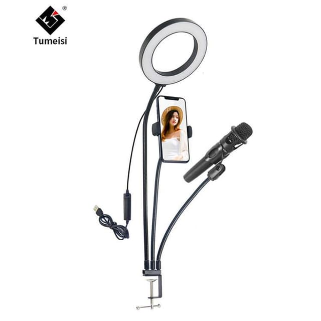 1x 16 cm LED-rengaslamppu1x säädettävä jalusta1x älypuhelimen pidike1x mikrofonin pidike