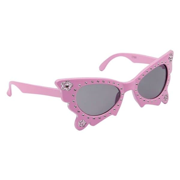 Aurinkolasit Perhonen - Pinkki Ihastuttavat lasten aurinkolasit perhosen muodossa! Söpöt perhosen muotoiset kehykset! Kehyksen korkeus: 41 mm Sangan pituus: 117 mm Leveys: 123 mm