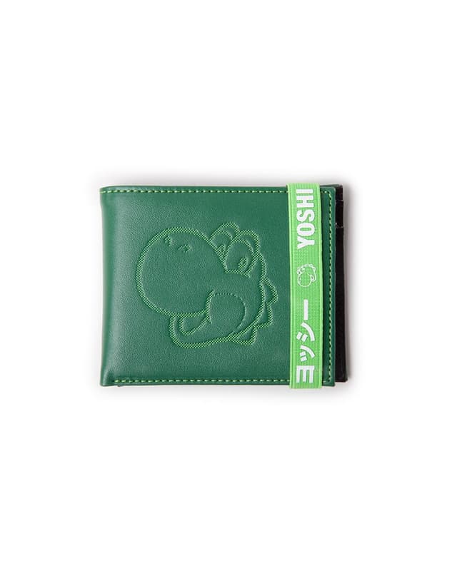 Yoshi men’s wallet with rubber dotted print, printed elastic band and woven label.