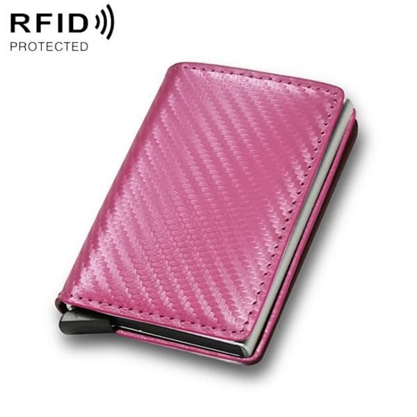 Tarkemmat tiedot - Väri: Pinkki Hiilikuitu - Materiaali: Alumiiniseos + PU-nahka - RFID-antimagneettinen suojatoiminto - Tilaa 10 kortille - Setelipidike