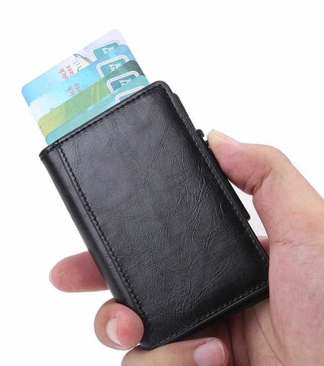 Pop-up -korttikotelo, jossa signaalin esto, jonka ns. RFID-suoja estää luvattoman pääsyn henkilökohtaisiin tietoihin ja suojaa luottokortteja, pankkikortteja tai henkilökortteja korttisirutietojen luvattomalta käytöltä.
