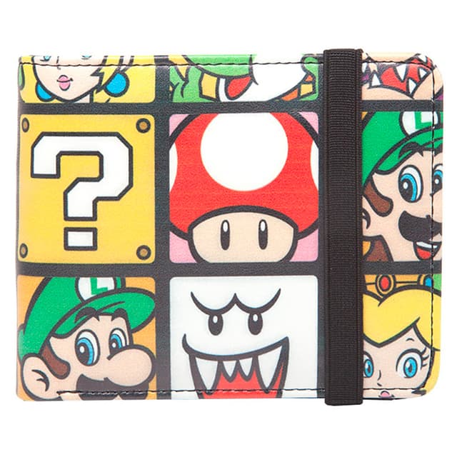 Taitettava lompakko, jossa on Super Mario hahmoja. Kolikkotasku ja paikat korteille. Kuminauhalla suljettava. 70 % polyuretaania ja 30 % polyesteriä.Tutustu ominaisuuksiin