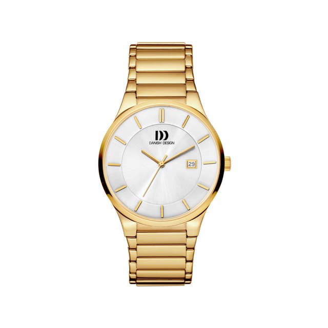 Tämä danish design gents -kello sisältää kultaisen laskostetun ruostumattoman teräksen kotelon, jossa on valkoinen valitsin, mineraalilasi ja ruostumaton teräsrunko. Tämä on klassinen ajastin, jota voidaan käyttää missä tahansa tilanteessa.