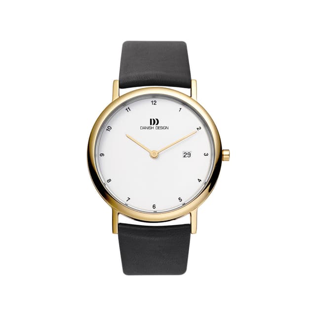 Tämä danish design-kello sisältää kultaisen värisen titaanikotelon, jossa on valkoinen valitsin, mineraalikidelasi ja musta nahkahihna. Tanskalaisen muotoilun klassinen ajastin, jota voidaan käyttää missä tahansa tilanteessa.