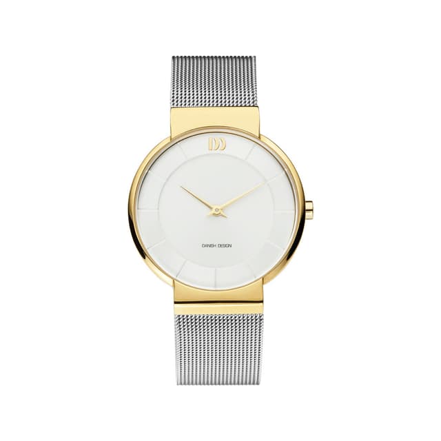 Minne mennä, tämä kello danish design on täydellinen kumppani. Kellolla on kultainen ruostumattomasta teräksestä valmistettu kotelo, jossa on valkokangas, mineraalilasi ja ruostumattomasta teräksestä valmistettu rannerengas.