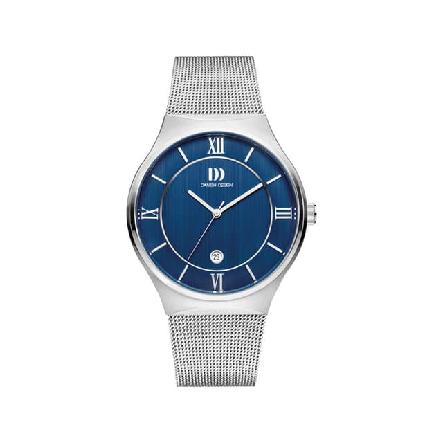 Danish design gents -ikkunassa on ruostumattomasta teräksestä valmistettu kotelo, jossa on sininen valitsin, mineraalilasi ja ruostumaton teräsverkko. Tämä on klassinen ajastin, jota voidaan käyttää missä tahansa tilanteessa.