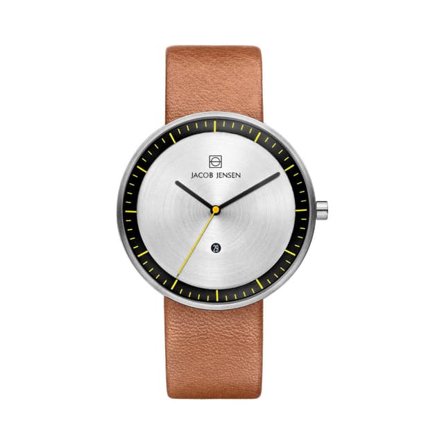 Palkittu strata-katsekokoelma on suunniteltu mukautumaan päivittäisen elämisen joustavuuteen. Helposti vaihdettava nahkahihna on selvästi näkyvissä kotelon puolella, joka antaa katsella erottuva esteettinen ilme. Klassisen muotoilun, toimivuuden ja korkealaatuisten materiaalien yhdistävä strata-kello on jacob jensen design studio -sivuston luomama ikonikello.