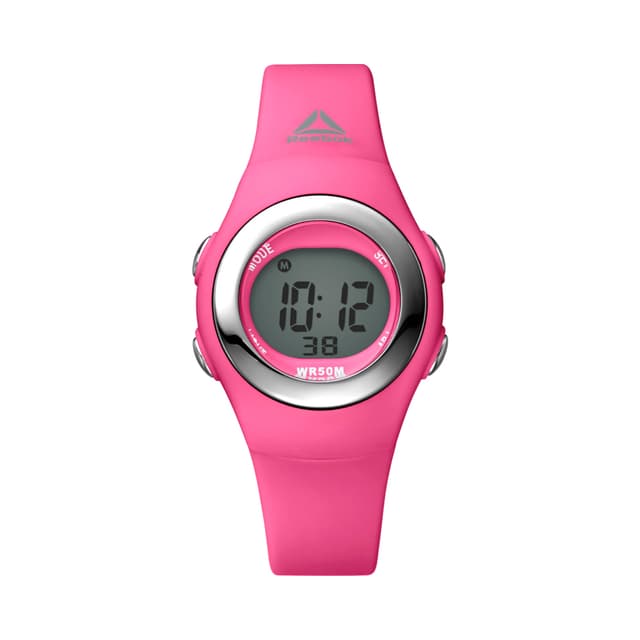 Tämä reebok vive -kello on 33 mm. Abs-kotelo ja muovinen hihna. Kellossa on aikaa, lähtölaskenta, hälytys, krono, ajastin, kuukausi, päivä ja päiväys ja vedenpitävyys jopa 50 metriä.