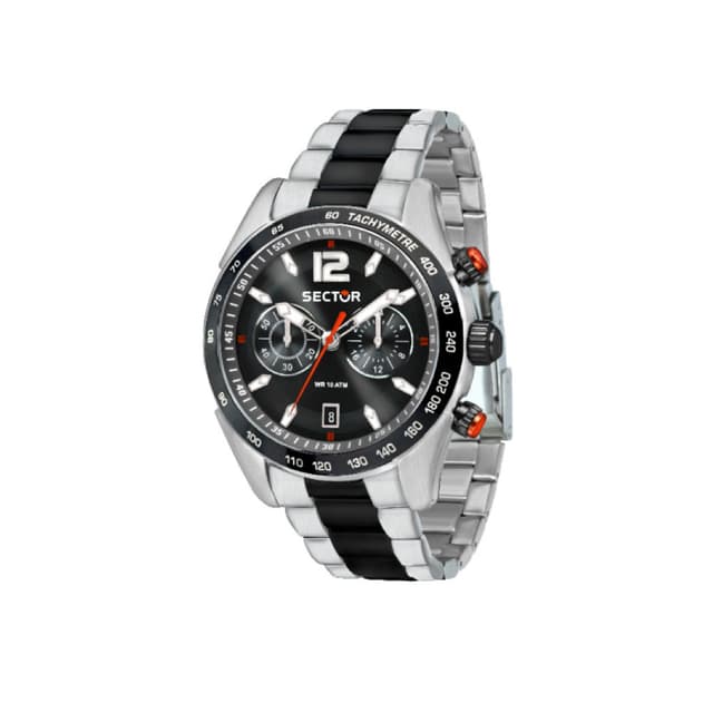 Kotelon materiaali ja pintakäsittely: ruostumaton teräs, pvd, kotelon koko: 54x45mm, kotelon paksuus: 11,75, väri: harmaa, kristalli: safiirikristalli, hihna materiaali: metalli rannekoru, hihna väri: teräs ja musta, liikkuminen: kvartsi, tyyppi: käyttövipu työntölaitteilla, vedenkestävä: 10 atm, takuu: sector 2 vuoden takuu, pakkaus: sector alkuperäispakkaus