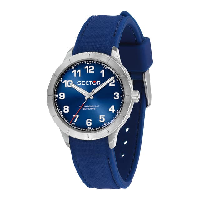 Kotelon materiaali ja viimeistely: ruostumaton teräs, kotelon koko: 37mm, lasi: mineraali, hihna materiaali: silikoni, väri: sininen, liike: kvartsi, takuu: toimialan 2 vuoden takuu, pakkaus: sector alkuperäinen pakkaus