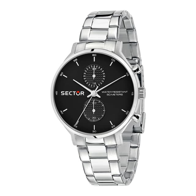 Kotelon materiaali ja viimeistely: ruostumaton teräs, kotelon koko: 39mm, lasi: mineraali, hihna materiaali: ruostumaton teräs, väri: musta, liike: kvartsi, vesitiivis: 5 atm, takuu: sektorin 2 vuoden takuu, pakkaus: sector alkuperäinen pakkaus