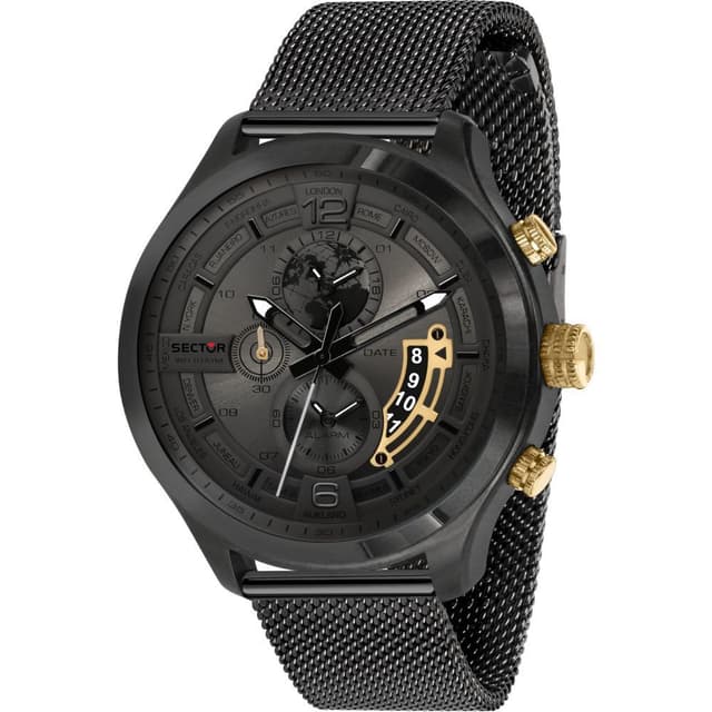Sectorin kronografikello on varustettu 48,5 mm: llä. Ruostumattomasta teräksestä valmistettu kotelo, jossa on mineraalikristalli suojattu kvartsiliike. Kello tulee alkuperäiseen sector-pakkaukseen ja 2 vuoden takuun.