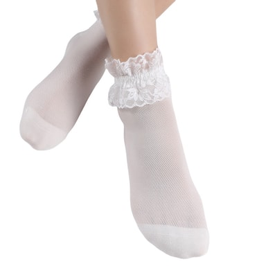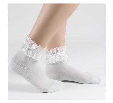 Pysy mukavana 5 pakkauksen tyttöjen valkoisilla pitsikoristesukilla, jotka on valmistettu pehmeästä puuvillasekoitteesta. Nämä hengittävät ja liukumattomat sukat sopivat täydellisesti päivittäiseen käyttöön.Tutustu ominaisuuksiin