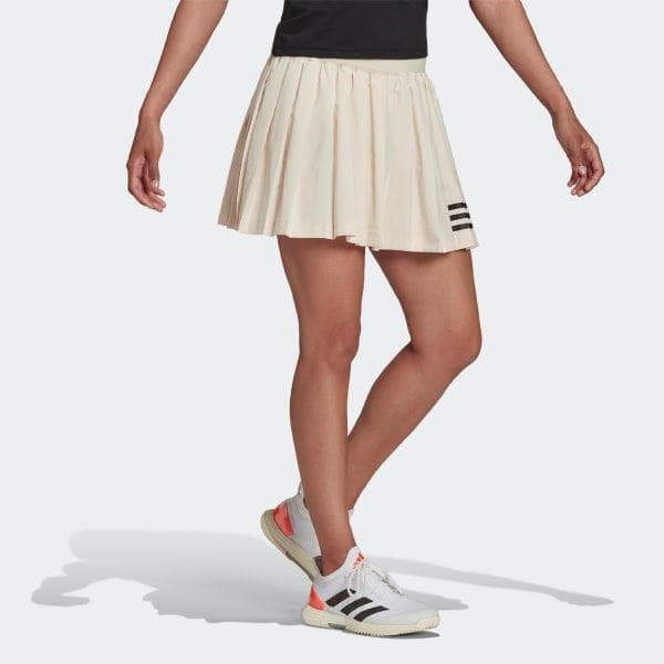 OUTSTANDING TENNISHAME, JOKA PITÄÄ SINUT PELISSÄ. Kerhotyyliä modernilla twistillä. Tässä Adidaksen laskostetussa, A-linjaisessa hameessa on ajaton tennistunnelma. Mutta pyyhkäisevät vaakasuorat 3-raidat antavat sille päivitetyn ilmeen.
