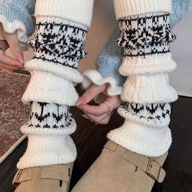 Tyylikäs Fair Isle -kuvio: Nosta tyyliäsi näillä Fair Isle -tyylisillä pohjepituisilla säärystimillä. Monimutkainen kuvio lisää ripauksen vintage-viehätystä mihin tahansa asuun, mikä tekee niistä muodikkaan asusteen kaikkiin tilaisuuksiin. Klassinen Fair Isle -kuvio on ajaton ja monipuolinen täydentäen monenlaisia tyylejä. Olitpa pukeutumassa erityistilaisuuteen tai lisäämässä ripauksen tyyliä arkipäiväiseen lookiisi, nämä säärystimet tekevät varmasti vaikutuksen. Yksityiskohtainen kuvio ja pehmeät värit luovat visuaalisesti houkuttelevan asusteen, joka parantaa yleisilmettäsi. Nämä säärystimet eivät ole vain tyylikkäät, vaan myös toiminnalliset tarjoten lämpöä ja mukavuutta samalla kun ne lisäävät ripauksen eleganssia vaatekaappiisi. Fair Isle -kuvio sopii täydellisesti lisäämään ripauksen hienostuneisuutta mihin tahansa asuun.