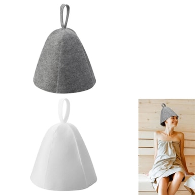 Suojasuoja: Suunniteltu suojaamaan hiuksiasi, päänahkaa, korviasi ja silmiäsi kovalta kuumuudelta saunan aikana. Nämä kylpyhatut tarjoavat tehokkaan suojan mahdollisia vaurioita vastaan, joita voi aiheutua pitkäaikaisesta altistumisesta korkeille lämpötiloille.
