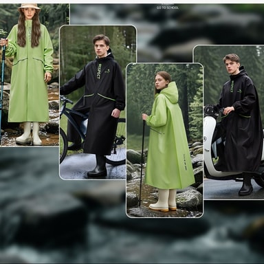 Repun tila: Tämä sadetakki on suunniteltu avoimella repun asennolla, ja se sopii helposti suurille repuille, mikä tekee siitä täydellisen opiskelijoille, retkeilijöille ja työmatkalaisille. Tilava muotoilu varmistaa, että reppusi pysyy kuivana tinkimättä mukavuudestasi tai liikkuvuudestasi. Avoin muotoilu mahdollistaa helpon pääsyn reppusi sisältöön pitäen samalla tavarasi suojassa sateelta. Tämä ominaisuus on erityisen hyödyllinen niille, jotka kantavat raskaita kuormia tai tarvitsevat nopean pääsyn tavaroihinsa liikkeellä ollessaan. Nauti tämän harkitusti suunnitellun sadetakin mukavuudesta ja suojasta.