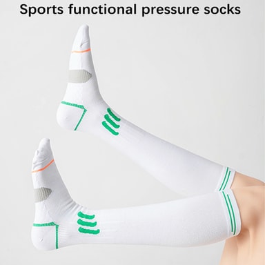Kohdennettu tuki: Koe paranneltu tuki pohkeille, nilkoille ja jaloille porrastetulla kompressiosuunnittelullamme. Tämä auttaa parantamaan verenkiertoa, vähentämään lihasten väsymystä ja parantamaan yleistä suorituskykyäsi harjoitusten aikana.