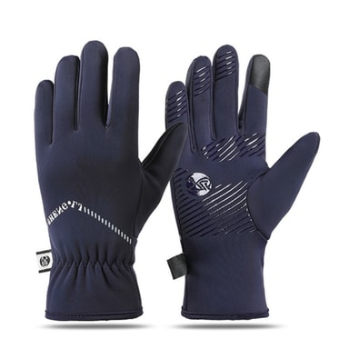 Miesten talvipyöräilyhanskat: Lämpimät, kosketusnäyttöä tukevat, tuulenpitävät ja liukumattomat Sininen