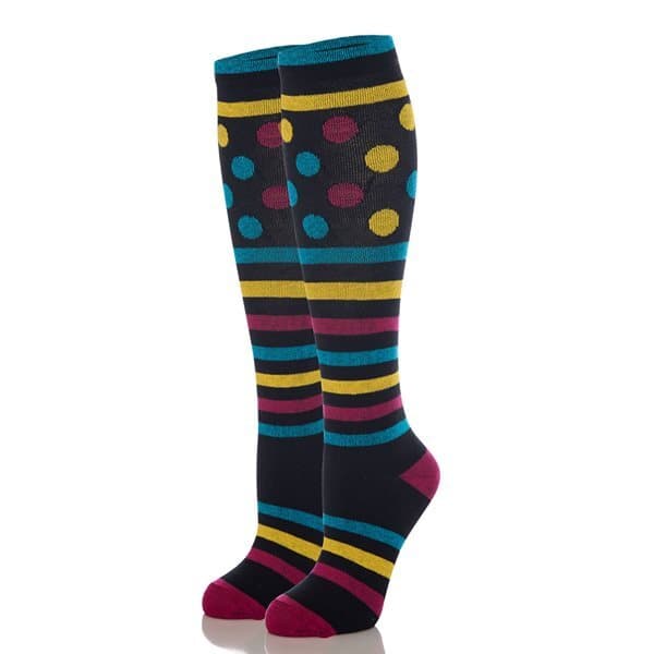 Väri: Moniväriset pisteet ja raidat Koko: 41-45 Valmistettu 60 % puuvillasta, 21 % polyesterista, 19 % elastaanista