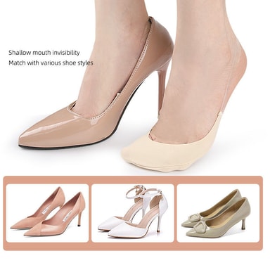 Turvallinen, piilossa pysyvä istuvuus: Näissä näkymättömissä sukissa on ainutlaatuinen pitsikoristeinen, ristikkäinen muotoilu, joka varmistaa turvallisen ja mukavan istuvuuden estäen niitä valahtamasta alas. Silikonipinnat tarjoavat lisäpitoa, mikä tekee niistä täydelliset käytettäväksi avokkaiden, korkokenkien tai minkä tahansa matalan kengän kanssa. Nauti koko päivän kestävästä mukavuudesta ja itsevarmuudesta ilman, että sukat pilkistävät.