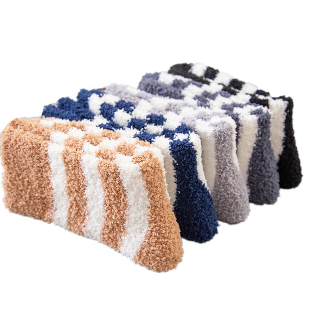 Pörröiset mikrokuituiset sukat mukava, pehmeä ja kevyt. Erittäin mukava kotona viihtymiseen tai tukeviin saappaisiin ja kumisaappaisiin. Toimitetaan 5 pakkauksessa raidallisia sukkia 5 eri värissä.