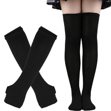 • Raidallinen sukkien ja hansikkaiden setti cosplayhin Musta