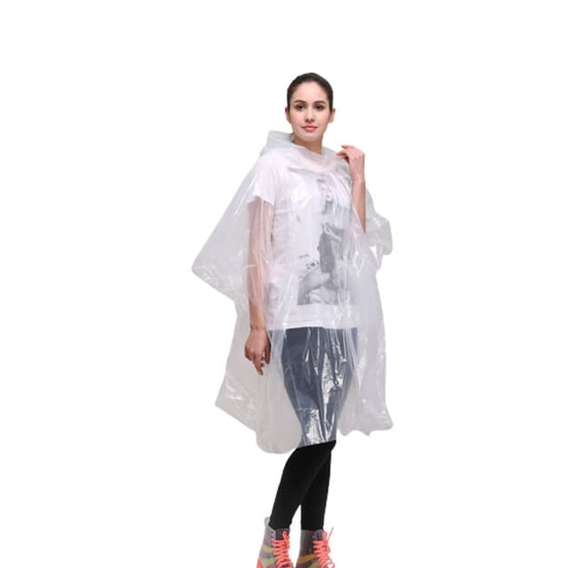 • Sadeponcho, jossa huppu kiristysnyörillä Läpinäkyvä
