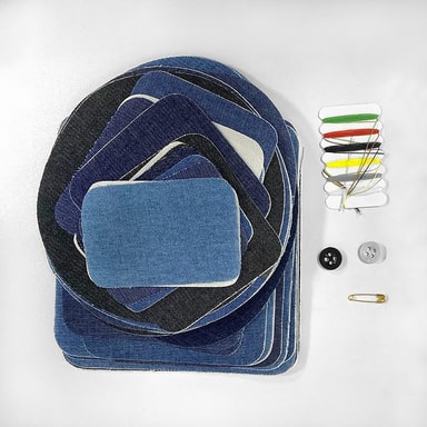 Kestävästä denimkankaasta valmistetut korjauspaikat eri väreissä ja muodoissa. Revenneelle alueelle silitettävät paikat ovat tyylikäs ja yksinkertainen ratkaisu, jossa ei tarvitse ompelua. Kangaslappu voidaan leikata haluttuun muotoon.Tutustu ominaisuuksiin