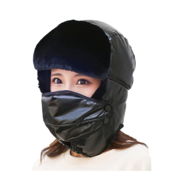 • Unisex Winter Trooper Trapper Hat Metsästyskorvaläppä tuulenpitävällä maskilla Musta