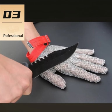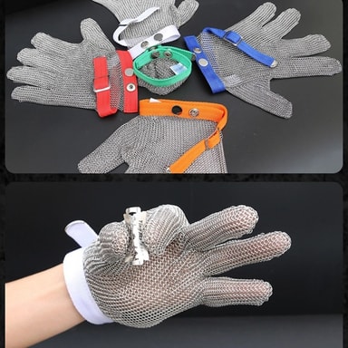 Erinomainen viiltosuojaus: Koe vertaansa vailla oleva käsien turvallisuus viiltosuojakäsineellämme, joka on valmistettu erittäin lujasta 316L ruostumattomasta teräksestä. Tämä käsine tarjoaa poikkeuksellisen suojan viiltoja ja puhkaisuja vastaan, joten se on ihanteellinen vaativiin ympäristöihin, kuten elintarviketeollisuuteen, metalliteollisuuteen ja teollisuusympäristöihin. Tiheästi kudottu teräsrengasrakenne varmistaa, että kätesi on suojattu teräviltä teriltä ja työkaluilta, mikä vähentää loukkaantumisriskiä ja parantaa työturvallisuutta. Olitpa sitten tekemisissä veitsien, terien tai muiden terävien esineiden kanssa, tämä käsine tarjoaa luottamusta ja turvallisuutta, joita tarvitset suorittaaksesi tehtäväsi tehokkaasti ja turvallisesti. Täydellinen lihakauppiaille, kokkeille ja metallityöntekijöille.