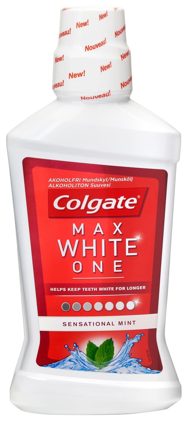 Alkoholiton Colgate MaxWhite One suuvesi raikastaa hengityksesi ja valkaisee hampaita.