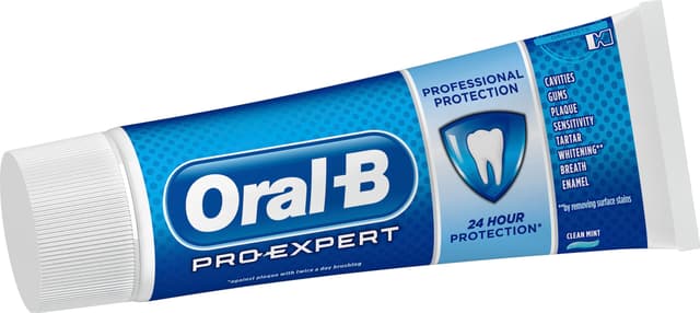 Oral-B ProExpert Professional Protection -hammastahna tarjoaa suojaa 8 yleisimmältä suun ongelmalta, taaten ammattitason suojan: ienongelmat, herkkyys, reiät, plakki, värjääntyminen, haiseva henki, tartari sekä kiilteen eroosio. Ainutlaatuinen tinafluoridin sekä muiden aktiivisten ainesosien yhdistelmä on Oral-B:n edistyneinen hammastahnateknologia. Pakkaus sisältää 75 ml hammastahnaa.