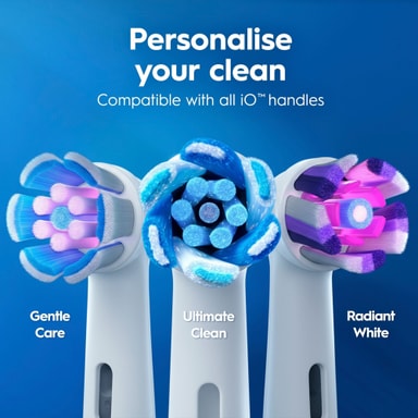 Oral-B:n edistyksellisin iO-teknologia puhdistaa hampaat tehokkaasti. Harja on hellävarainen ikenille, hiljainen käytössä ja muistuttaa sinua vaihtamaan harjaspään kolmen kuukauden välein hammaslääkärien suosituksen mukaisesti.