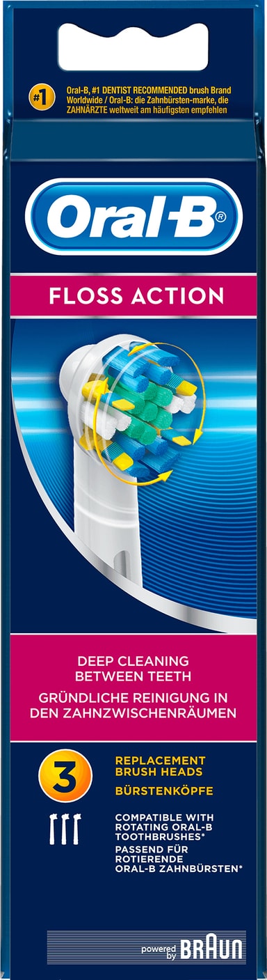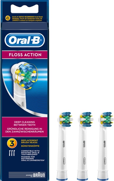 Oral-B FlossAction -hammasharjan vaihtopää poistaa enemmän plakkia ja edistää suun puhtautta ja ikenien terveyttä.