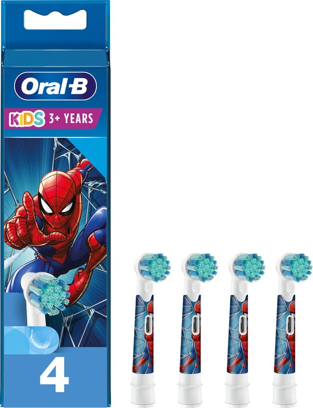 Oral B Kids Spiderman -harjaspäillä lapsesi ovat innoissaan hampaiden pesusta aamuisin ja iltaisin värikkään Spiderman -kuvioinnin ansiosta. Harjaspäät sisältävät tavallista pehmeämmät harjakset sekä pienen ja pyöreän pään, taaten hellän ja tehokkaan puhdistuksen. Pakkaus sisältää neljä harjaspäätä.