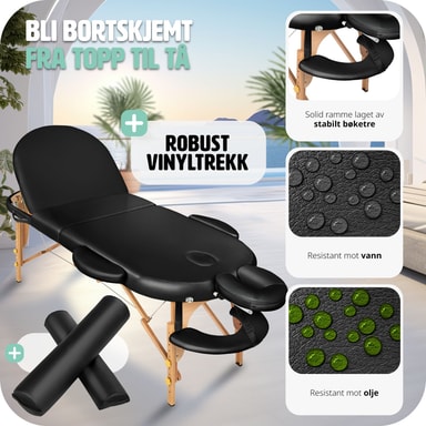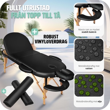 • Hierontapöytä soikea 5 cm pehmusteella + rullat