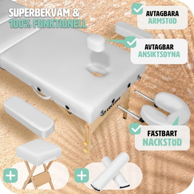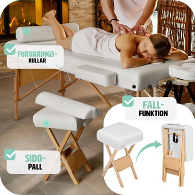 Kohokohdat • Täysin säädettävissä • Pehmeästi pehmustettu optimaalisen mukavuuden takaamiseksi • Tukilaite pään lepäämiselle sivussa • Kestävä Pukeutuminen • Färg: valkoinen