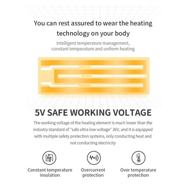 Nopea lämmitys: Koe välitöntä lämpöä lämmitetyn liivimme 10 sekunnin nopean lämmitystekniikan avulla. Liivi saavuttaa nopeasti halutun lämpötilan tarjoten tasaista ja miellyttävää lämpöä kylmissä olosuhteissa. Täydellinen ulkoiluun, kuten hiihtoon, patikointiin tai yksinkertaisesti viihtyisänä pysymiseen kylminä päivinä. Kahdeksan strategisesti sijoitettua lämmitysaluetta varmistavat tasaisen lämmön jakautumisen pitäen ytimen lämpimänä ja suojattuna kylmältä. Tämä liivi on yhteensopiva minkä tahansa USB 5V/2.1A -virtapankin kanssa tarjoten joustavuutta ja mukavuutta käyttäjille. Nauti jopa 10 tunnin jatkuvasta lämmöstä yhdellä latauksella, mikä tekee siitä ihanteellisen pitkiin ulkoiluseikkailuihin tai päivittäisiin työmatkoihin.