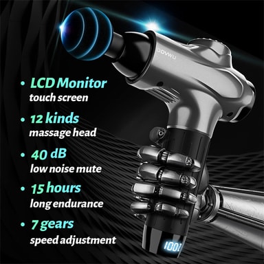 Hierontapistooli voi tehokkaasti hieroa lihaksia, lievittää arkuutta, jäykkyyttä päivittäisessä harjoituksessa ja päivittäisessä kotitöissä, edistää verenkiertoa. 7 nopeustasoa ja 12 hierontapäätä voidaan säätää tarpeidesi mukaan.