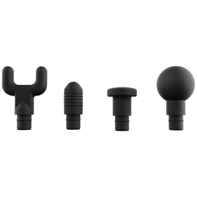 Hierontapääpakkaus Hyperice Hypervolt -hierontalaitteelle sisältää neljä vaihdettavaa hierontapäätä. Tasapäinen sekä luodin-, haarukan- ja pallonmuotoiset hierontapäät ovat suunniteltu eri lihastyypeille ja -ryhmille. Pallonmuotoinen hierontapää on erityisen hyvä alkuhierontaan suuren kokonsa vuoksi ja tasainen toimii parhaiten tiheille lihasryhmille. Luodinmuotoinen hierontapää toimii erinomaisesti hyvin pienten ja tarkkarajaisten alueiden hieromiseen, kun haarukkaa voi taas käyttää tiettyjen lihasryhmien hierontaan ilman suoraa kosketusta niihin.