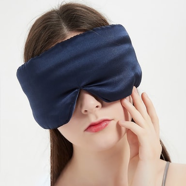 Valoa estävä muotoilu: Paksu, kaksipuolinen silkkirakenne estää tehokkaasti valoa ja luo täysin pimeän ympäristön, joka edistää syvää ja levollista unta.