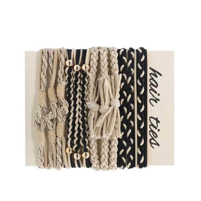 Korkealaatuiset materiaalit: Nämä hiussoljet on valmistettu korkealaatuisesta nailonista ja punotusta köydestä, ja ne on tehty kestämään. Materiaalien yhdistelmä takaa sekä lujuuden että joustavuuden, estäen rikkoutumisen ja säilyttäen muotonsa.