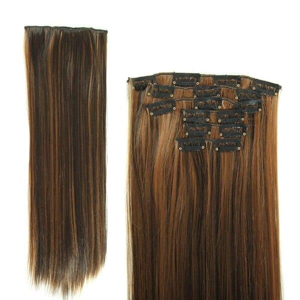 Saat pitkät, täyteläiset ja hienot hiukset näillä hiustenpidennyksillä, hiukset ovat tyylikkään suorat. Hiusten leveys on 28cm ja pituus on noin 60cm. Hiusten paino on 120 grammaa. Hiukset on valmistettu synteettisistä kuiduista, jotka sekä näyttävät ja tuntuvat aidoilta hiuksilta. Hiukset ovat täydelliset käytettäväksi, kun haluat pidemmät ja paksummat hiukset, tehdä kauniita kampauksia, jotka vaativat pidemmät ja täyteläisemmät hiukset, juhlatilaisuuksiin