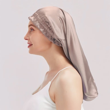 Ensiluokkainen silkkimateriaali: Valmistettu 100 % paksunnetusta 19-momme mulperisilkistä, tämä pitkä hiuslakki tarjoaa uskomattoman pehmeän ja ylellisen tunteen, joka on hellävarainen hiuksillesi.