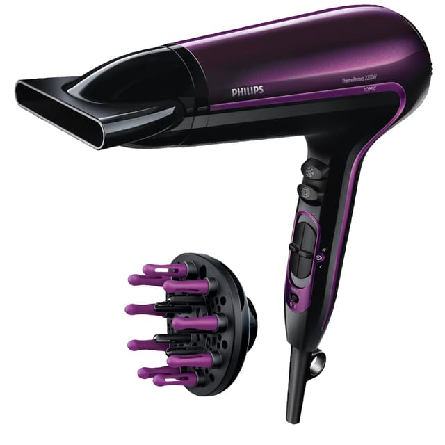 Upea violetti Philips DryCare Advanced HP8233/00 on nopea ja hellävarainen hiustenkuivaaja, jonka ThermoProtect -tekniikka tarjoaa optimaalisen kuivauslämpötilan. Ionikäsittelyllä saat sileät ja kiiltävät hiukset.Tutustu ominaisuuksiin
